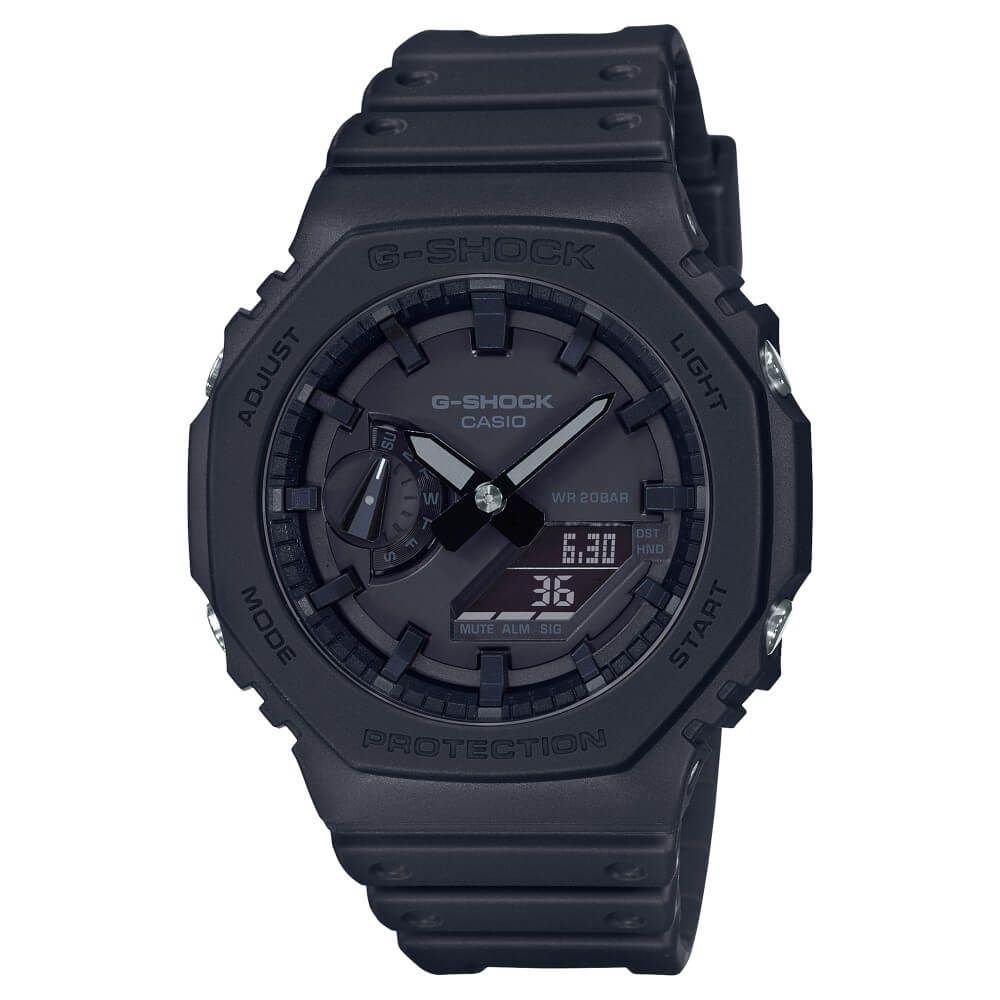Escolha a versatilidade atemporal com o icônico visual octogonal do G-SHOCK, agora nas lindas cores do GA-2100. A caixa do relógio é feita em resina fina reforçada com fibra de carbono, tornando-a mais fina e mais leve, tão resistente quanto nunca. O design simples e a construção robusta incluem um mostrador preto que oferece um look elegante e polido.