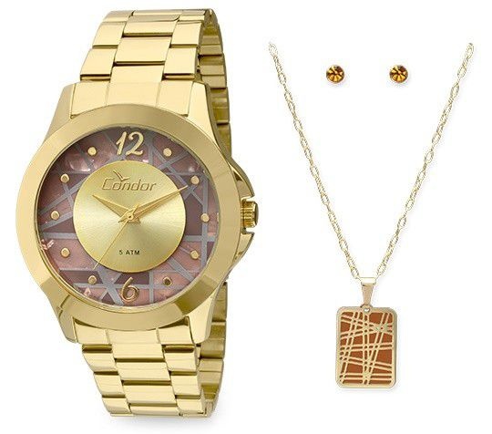 Relógio Condor Feminino CO2036CS/K4M + Colar e Brincos