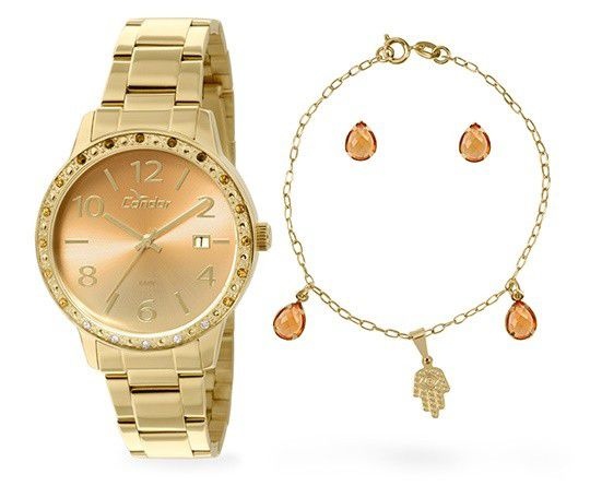 Relógio Condor Feminino CO2115TZ/K4L + Colar e Brincos