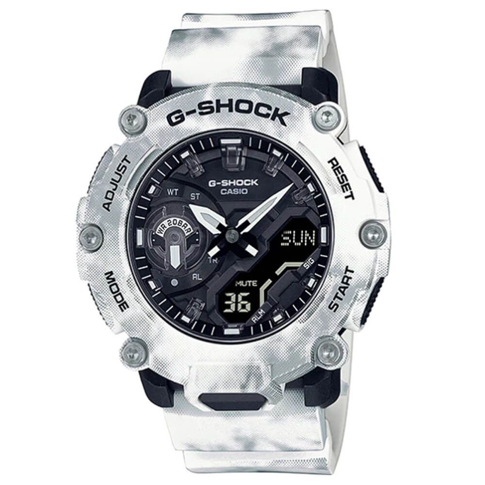 Encare todas as aventuras com este relógio resistente construído com uma estrutura de proteção principal de carbono, uma ferramenta indispensável para o seu kit de equipamentos para atividades ao ar livre. O design em três camadas integra perfeitamente a moldura, a parte traseira e os botões para reduzir a caixa a apenas 12,4 mm. Os botões laterais maiores e resistentes a choques eliminam a necessidade de protetores de botão, resultando em um relógio mais compacto. Tudo isso, sem comprometer a facilidade de uso. Na verdade, ele ficou ainda mais fácil de usar. A moldura redonda com seis parafusos ressalta a resistência robusta necessária para todo tipo de aventura. O indicador do mostrador, inspirado em um disco de freio automotivo, é envolto por um anel semicircular. Ambos recebem um acabamento de deposição de vapor para o visual metálico de uma engrenagem externa real. Fabricados separadamente, o mostrador e as peças são adicionados para adicionar dimensionalidade dinâmica ao visor do relógio. O visor digital funciona diagonalmente entre as posições de 4 e 6 horas para um toque final de ousadia.
