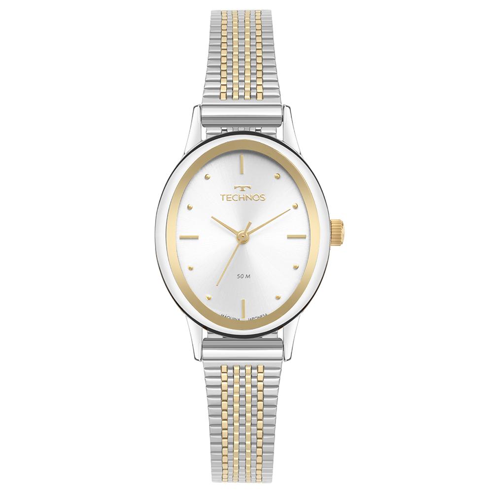 O Relógio Technos Feminino Style Bicolor - 2035MZE/1K combina um visual delicado com um toque de elegância clássica. Com caixa oval de 26 mm, ele é ideal para quem busca um acessório discreto, elegante e versátil para o dia a dia ou ocasiões especiais.