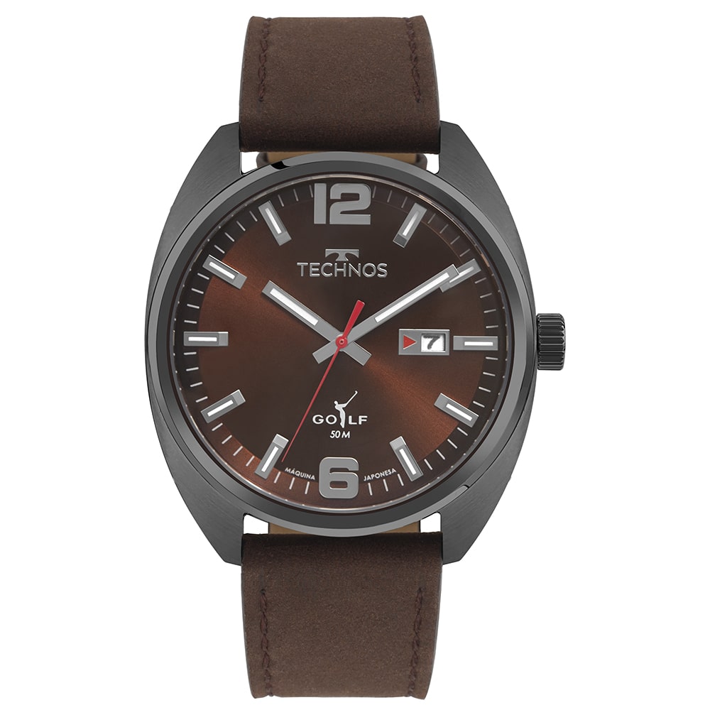 Novas versões de modelo best-seller da linha Golf. Ele apresenta um elegante aro de alumínio com acabando fosco, mostrador marrom e com a assinatura de linha. Material da caixa aço inoxidável, pulseiras disponíveis de couro na cor marrom, tamanho da caixa 44mm, resistência de até 50 metros na água, posição do calendário nas 6h disposníveis nos banhos grafite. Produto com máquina quartz japonesa Miyota.