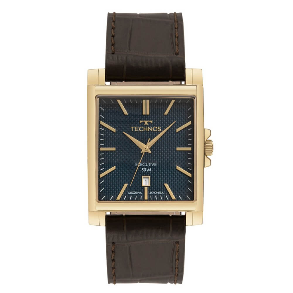 Relógio Technos Executive em uma nova versão de modelo best-seller, agora com caixa em formato retangular. Seu mostrador minimalista apresenta uma elegante textura e assinatura de linha. Produto 100% em aço inoxidável, com pulseira de couro, máquina quartz japonesa Miyota, calendário e resistência à água de 50 metros